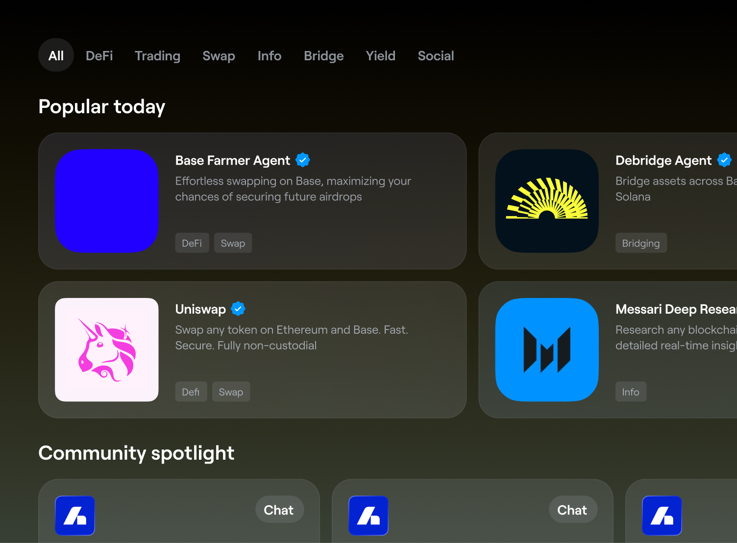 Discover specialised AI agents for trading, investing, and DeFi automation. Think of it as the App Store for Web3 Agents