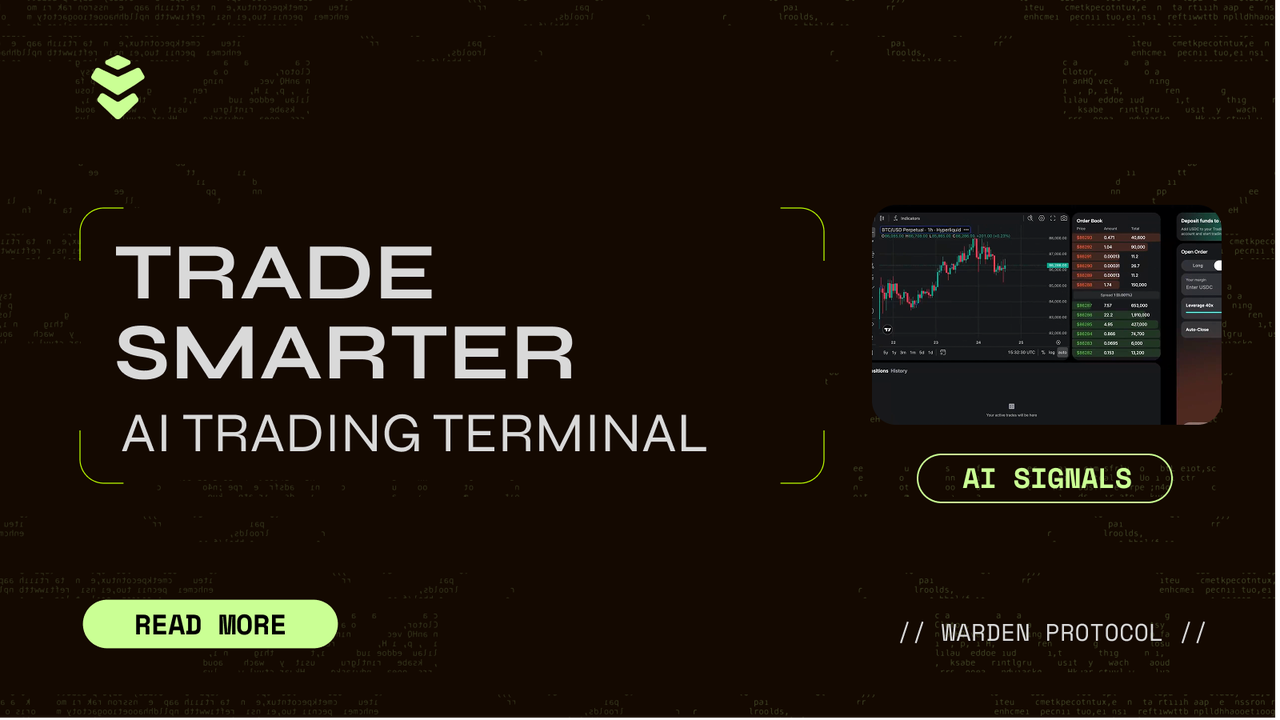 The Warden AI Trading Terminal brings real-time AI Signals directly into your trading screen so you can make informed decisions before placing a trade. In the next iterations, your agents will be able to execute trades automatically, powered by the Warden Quant Kit and set customizable strategies.