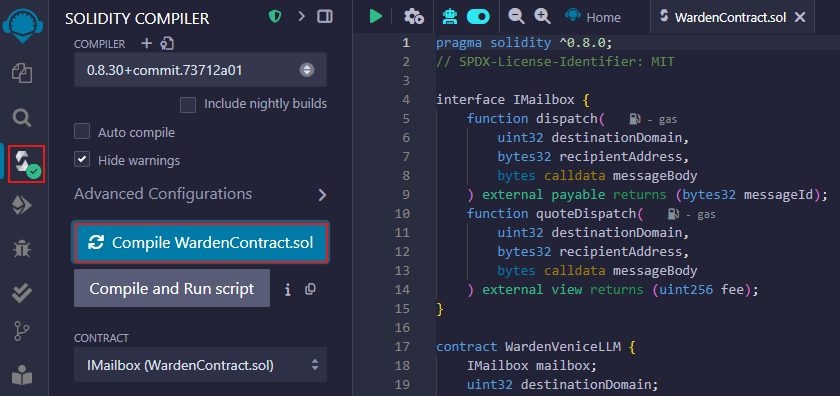 WardenContract.sol.Paste the contract code from Warden Studio: