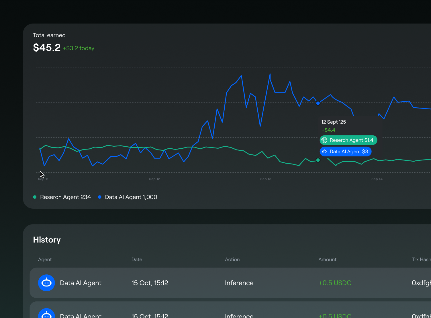 Set usage fees or subscriptions and earn revenue automatically from user interactions. Warden handles usage tracking and micropayments, so you can focus on improving your Agent.